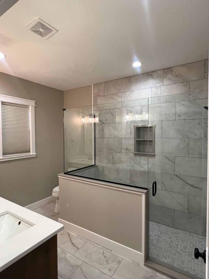 ✅The primary bedroom is large with a private bath, walk-in shower, and oversized walk-in closet