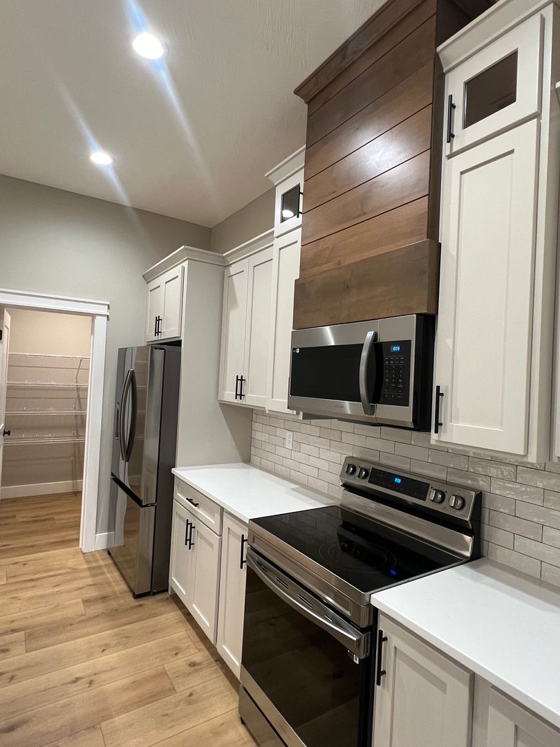 ✅The open kitchen has a walk-in pantry, large island, and stainless appliances.