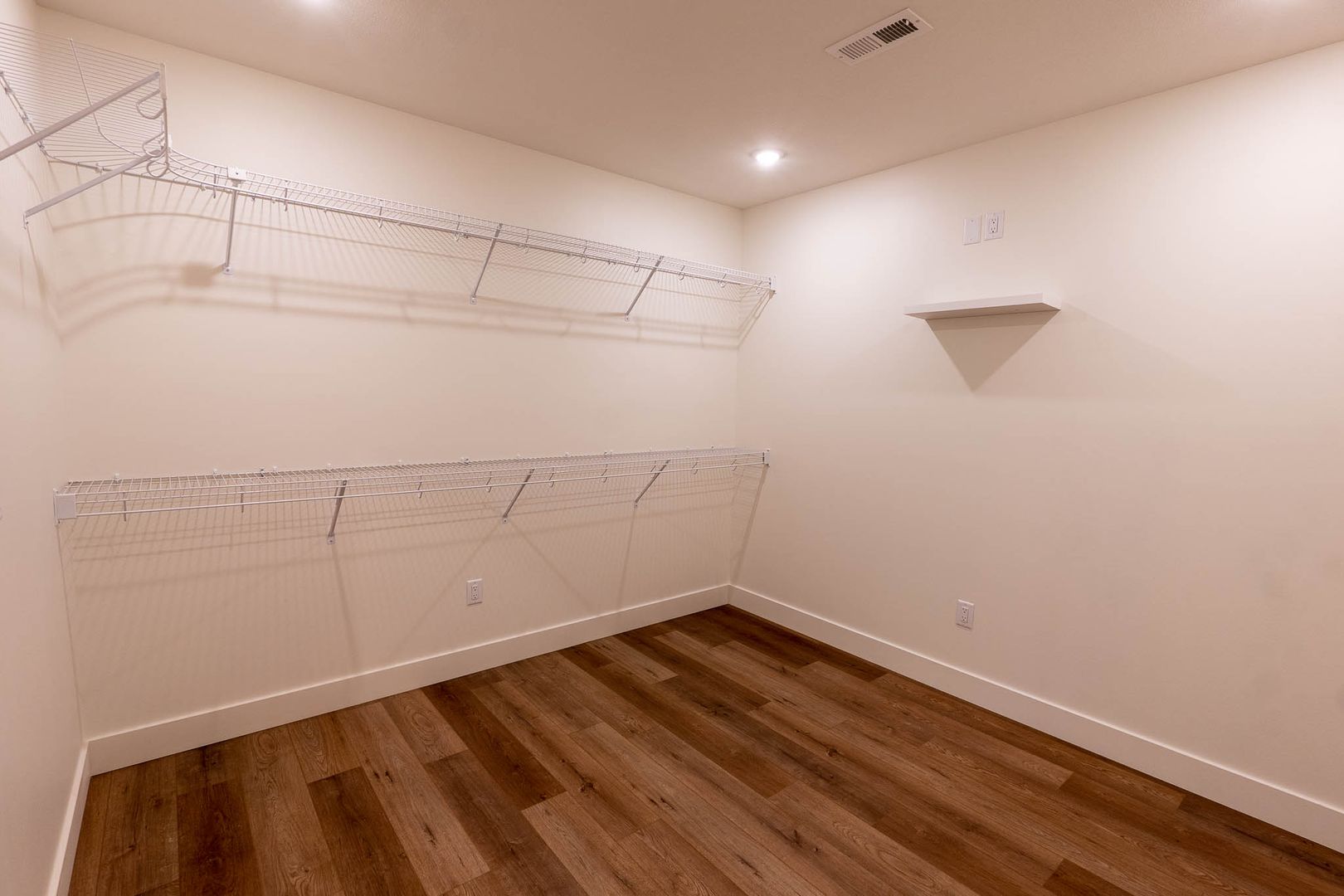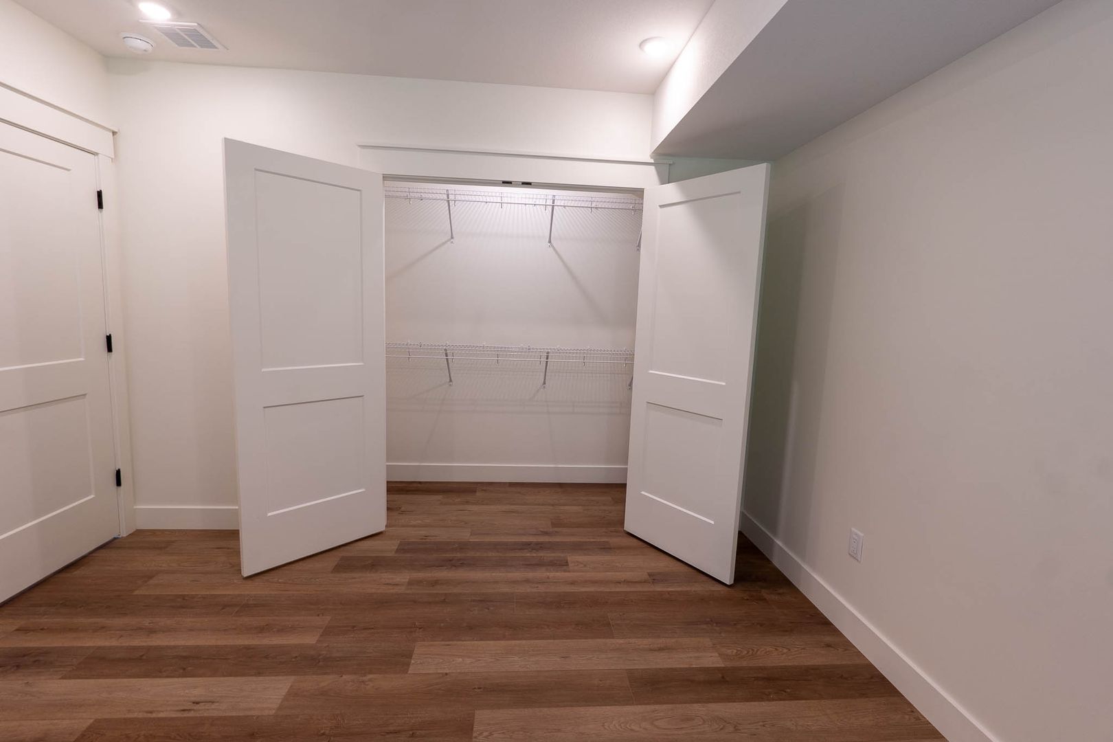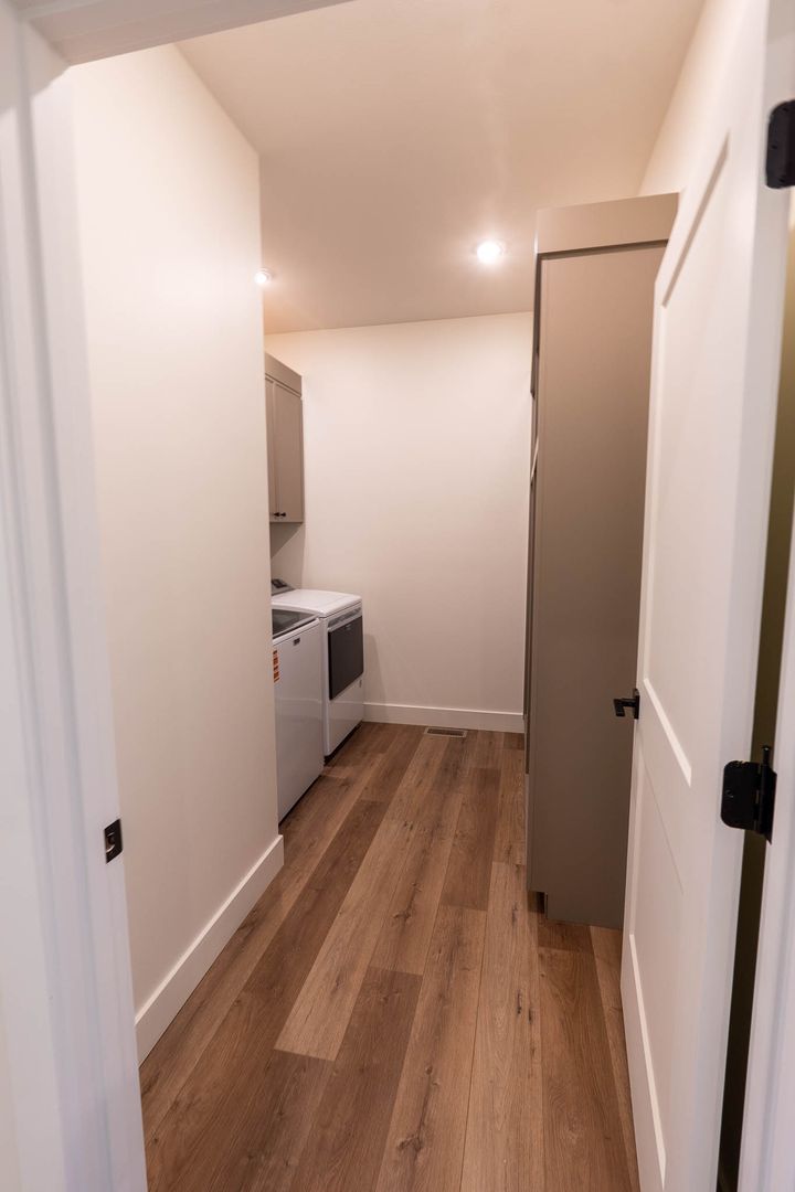 The main floor is over 1300 sq ft. with a large family living area, dining space, and kitchen. 2 bedrooms with a primary ensuite and an additional bedroom accompanied by a hallway full bath complete the main level. The spacious primary suite has a walk-in shower, custom cabinets and large closet. Luxury Vinyl (LVP) tile and planks are used throughout.
